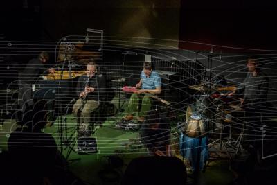 L’ensemble réunit : Xavier Charles (clarinette), Barbara Dang (piano), Anne-F Jacques (objets), Éric Normand (basse électrique) et Peter Orins (batterie)